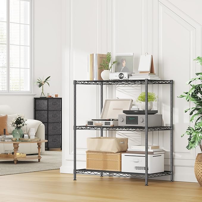 - Durable Storage Wire Rack: The storage shelves featuring advanced powder-coated finish, this black shelves resists water, rust. The protective coating withstands extreme temperatures without peeling, making it ideal for kitchens, bathrooms, or garages. Heavy-duty construction ensures long-lasting performance even in high-moisture environments. Never worry about rust or deterioration again.