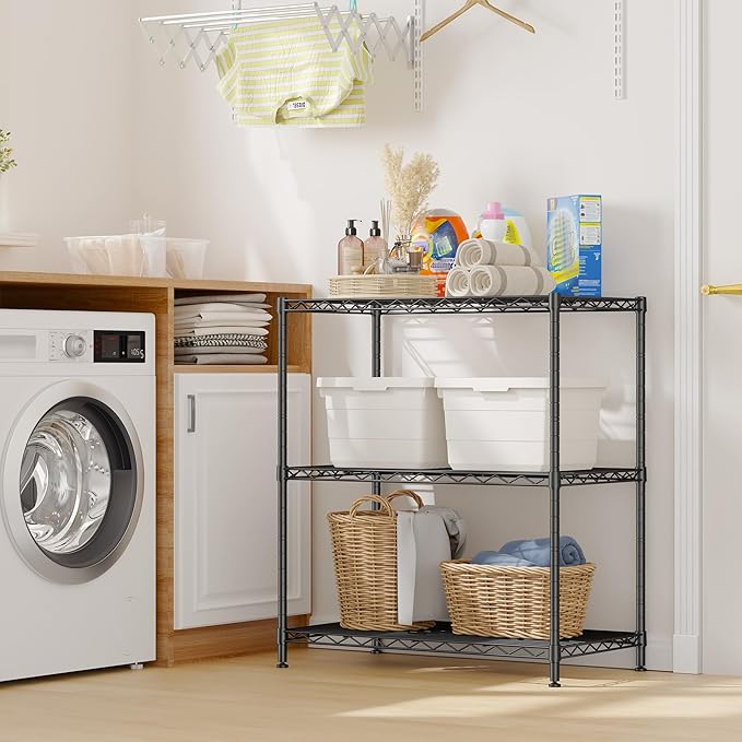 450LBS Storage Shelves 3 Tier Metal Shelving Unit Adjustable Wire Shelving Storage Rack Pantry Shelves for Kitchen Laundry Office Dorm Closet Bathroom 24" W x 30" H x 14" D Black