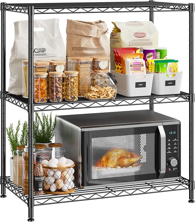 - Sturdy Steel Rack: This storage shelves delivers superior 150lb/shelf capacity without bending. Engineered with reinforced crossbars and 2mm thick wire grids, it maintains perfect stability while allowing optimal airflow. Ideal for heavy pots, small appliances, or pantry organization.