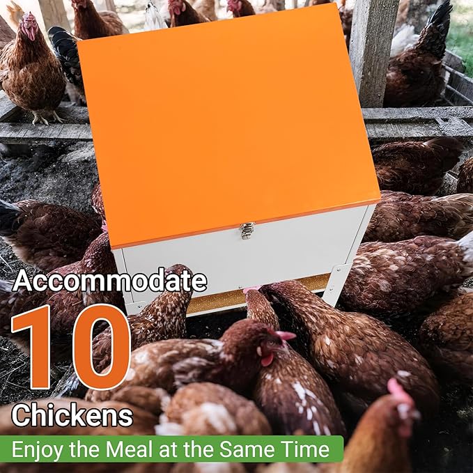 - Convenient to Use & Maintain: Equipped with a chrome-plated handle for easy carrying, the metal chicken feeder features a smooth, powder-coated surface that makes cleaning a breeze, so you can spend less time on upkeep and more time with your flock