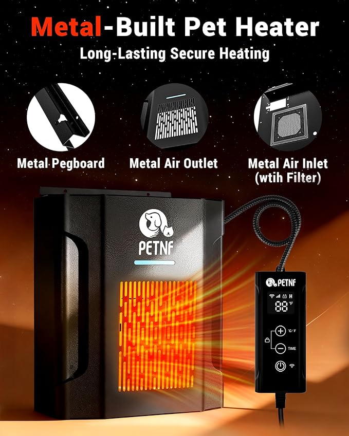 - Convenient Setup & Maintenance: Designed with user-friendly installation in mind, the heater includes clear instructions and requires minimal tools to mount securely in place. Cleaning and upkeep are simple, ensuring long-lasting performance. Compared with larger patio heaters or greenhouse systems, this compact model offers hassle-free operation without complicated steps. Families can set it up once and then enjoy automated performance without constant manual adjustments, keeping focus on pet wellbeing