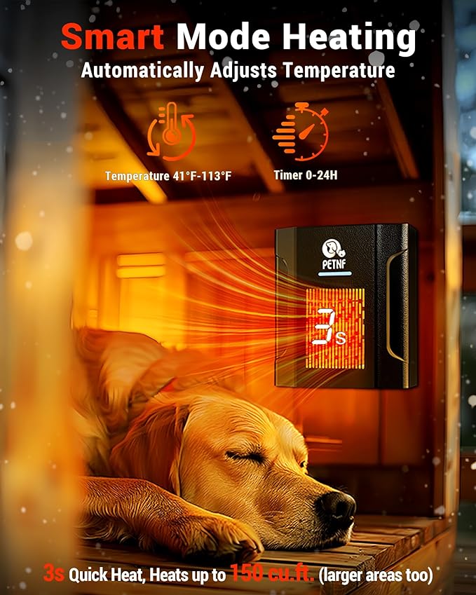 - Thermostat & Smart Wifi Control: Designed as a reliable dog house outdoor heater chicken coop heater, this unit allows owners to adjust temperature remotely via a SmartLife APP, making it easier to keep pets safe and comfortable in all seasons. The thermostat supports a wide range from 45°F to 113°F, giving you flexibility to set the perfect warmth for your outdoor dog house or chicken coop while ensuring consistent performance and stable heating without needing to constantly check manually