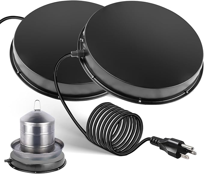 2PACK Chicken Water Heater for Winter,110Watt Heated Poultry Waterer Base,with Thermostat and 9.8ft Power Cord, Dia.11in,Suitable for Plastic/Metal Poultry Waterer
