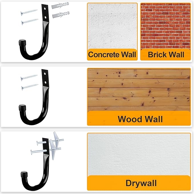- WIDE VARIETY OF USES - Heavy-duty wall hooks are ideal for hanging a ladder, bike, chair, shovel, stroller, blower, and other objects found in garages, gardens, and homes. Not only do they help you save space in your home, but they also offer a wide variety of uses.
