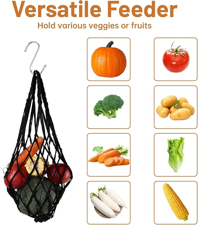 - Easy to Use: Place carrots, cabbage or other fruits in the mesh bag, hang the feeder on fence or coop with a hook, then chickens can peck