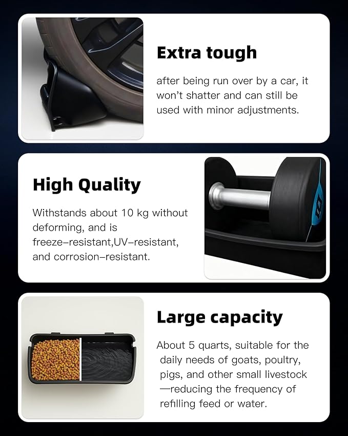 2 Pack Hanging Goat Feeder & Duck Feed Trough, 5 Qt Fence Mounted Livestock Manger – Heavy Duty Plastic Mineral Bucket & Waterer for Sheep, Piglets, Deer & Poultry