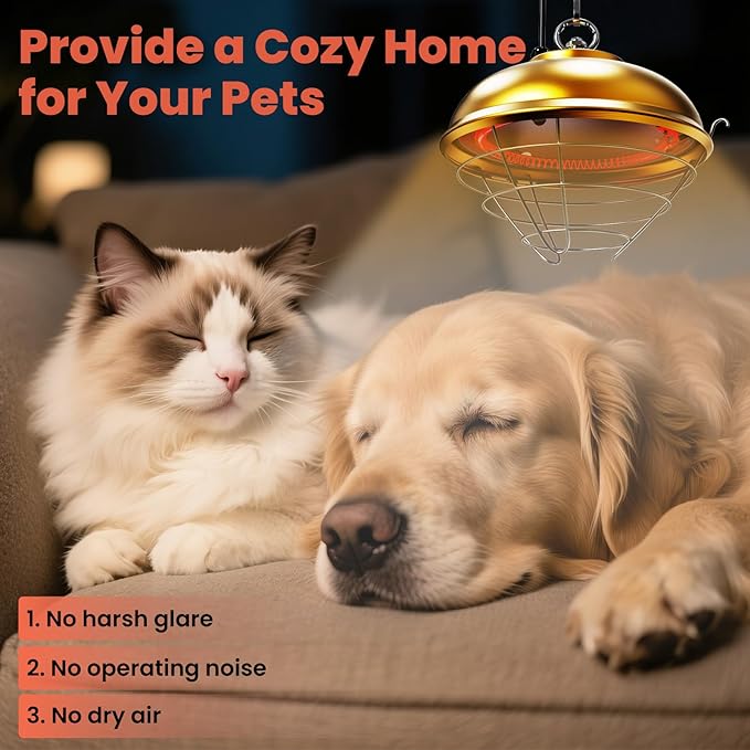 - Flexible Installation: Comes with an adjustable chain (0.5m–1m) and 5.58 ft UL-certified cord for safe setup. Easy to use as a coop heater, chicken house heater, or heat lamp for ducks in small or large enclosures