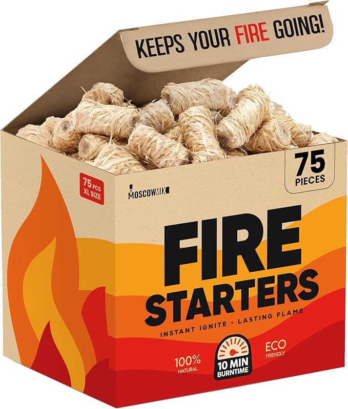 Moscow-Mix Fire Starter (75 PCS) Natural Fire Starters for Campfires, Fireplace, Charcoal Starter for Grill, BBQ, Wood Stove, Fire Pits - Odorless, Non-Toxic, Waterproof Natural Pine Wood Starters