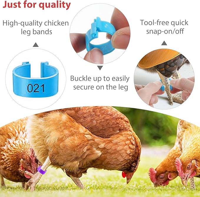 - 【Animal‑Friendly Secure Fit】Rounded edges and non‑slip buckle provide a snug, scratch‑free fit that moves with your poultry—minimizing stress while ensuring clear, lasting identification
