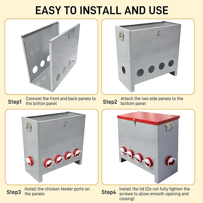 - 【Easy Assembly and Setup】This metal chicken feeder features a simple structure that can be assembled in minutes with no need for complex tools or special skills. Whether you’re new to poultry or an experienced keeper, it saves time and effort, letting you focus more on caring for your flock instead of struggling with equipment.