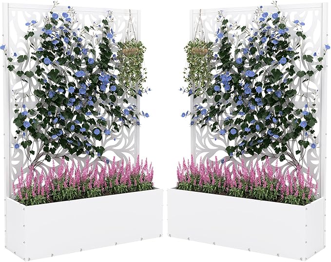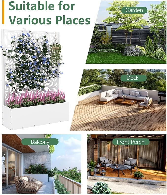 - Multi-Functional Raised Garden Bed with Trellis: This versatile metal planter box serves triple duty as: an elevated garden bed for vegetables and flowers,a sturdy trellis for climbing plants, and a decorative privacy screen - perfect for backyards, patios, and balconies. Its space-saving design maximizes your growing area while enhancing outdoor aesthetics.
