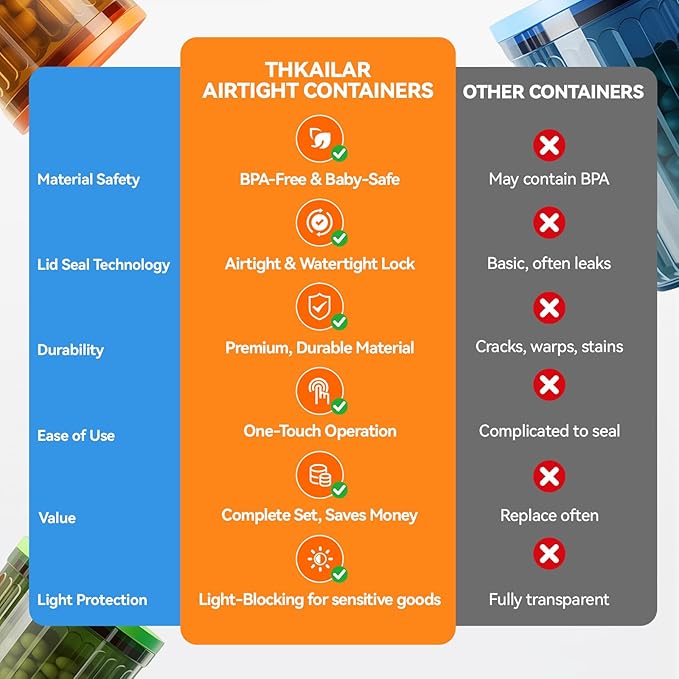 - 【Food Grade】This air tight pantry storage containers is made from premium food-grade AS+ABS resin and thickened silicone seal, rigorously tested to meet baby-safe standards. Guaranteed BPA-free and zero odor for worry-free storage of snacks, nuts, grains, and baby food.