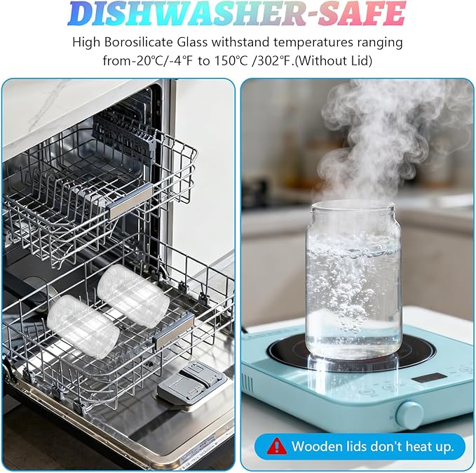 - 【MATERIAL & QUALITY】: SMALL Glass jars made of high-borosilicate glass With the advantages of high temperature and low temperature resistance,Can burn directly on induction cooktop, withstand temperature range 150℃ /302°F to -20℃/-4°F(Acacia wood Lid can not be covered, if in a hot environment.)Glass food storage containers with lids can be used in the refrigerator .