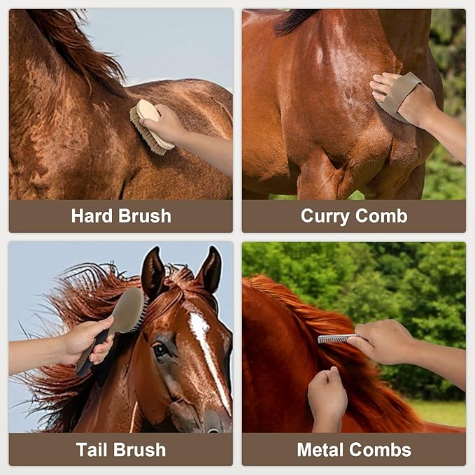 - Durable Horse Grooming Tools: Crafted from premium materials, these horse grooming tools feature sturdy handles and strong bristles for reliable performance, ensuring both durability and comfort during every grooming session
