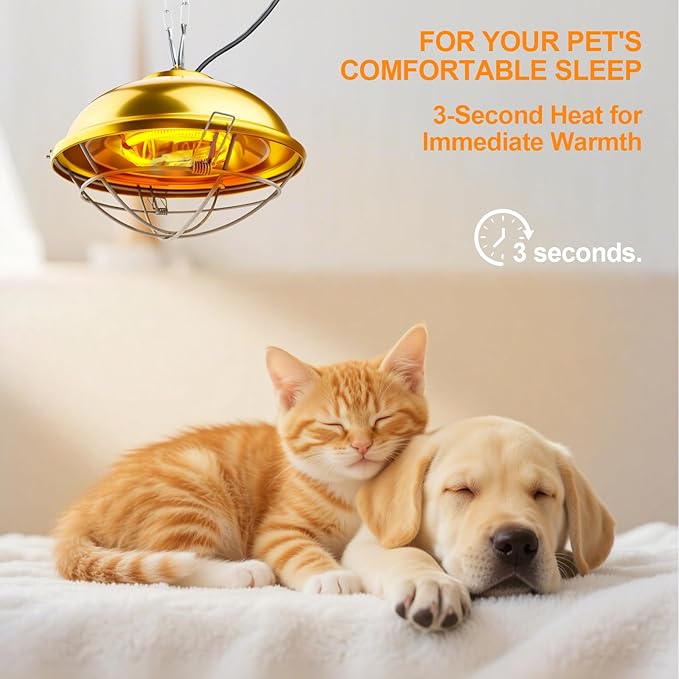 - 【Safe & Durable】 Our heat lamp is made of aluminum alloy material,featuring an insulated and non-heating shell that is also water-resistant. The chicken coop heater power cord also has international UL certification and overheating protection design , which is safe to use for your small animals,pet poultry, reptiles, and amphibians