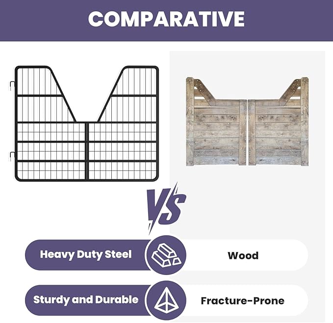- [Suitable For Commercial Use]: Built to handle the demands of busy barns, this Horse Stall Gate is perfect for both residential and commercial Horse Stall Gates. The Heavy-Duty Steel Gate for Horse delivers unmatched strength.