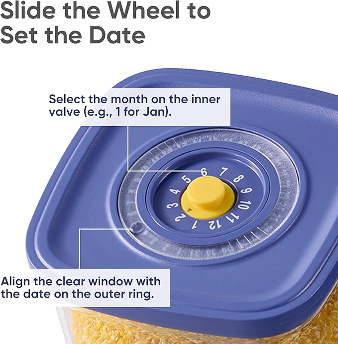 - Adjustable Date Indicator: Simply rotate the silicone valve on the lid to select the corresponding month and date, making it easy to track the storage date of your food at a glance