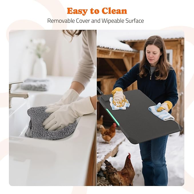 - Easy-Clean Waterproof Surface: Simply wipe the durable plastic base clean, the removable machine-washable cover keeps this brooder plate for chicks and animal heating pad fresh with minimal effort