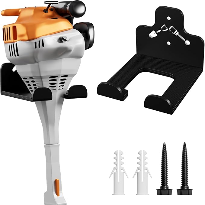 - Easy to Install: Only a few minutes is needed to install the weight bar storage to your wall, our weedeater hanger wall mounted for grass trimmer, hedge trimmer, garage trimmer, garden tools, the perfect tool saving space for your home and workplace,the trimmer hanger hook kit come with 1 racks, 2 screws and 2 expansion tubes.