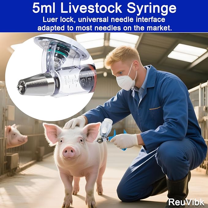 - Adjustable Dose: The adjustable range the adjustable range of 5ml is 0.5-5ml., The dose control is accurate, the scale is clear, the vaccine is not wasted, for precise and rapid injections to meet various injection needs.