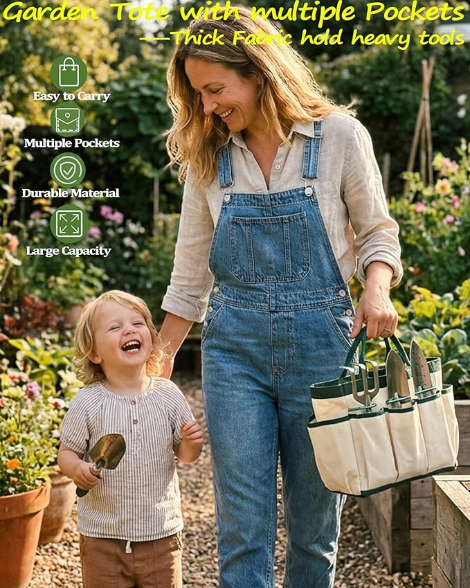 - 【Perfectly Organized & An Ideal Gift】Keep all your gardening tools neatly stored and portable in the sturdy, fashionable tote bag. Everything has its place, so you're always ready to garden. Presented in a cohesive set, it makes for a thoughtful and practical gift for any gardening enthusiast, whether they are just starting out or are seasoned experts.