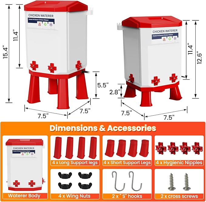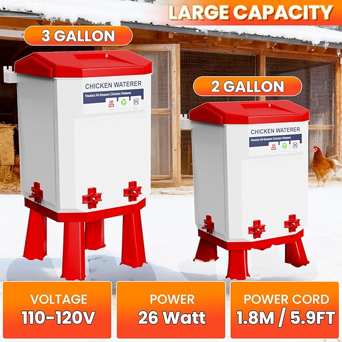 - Year-Round Clean Water – This 3-gallon heated poultry waterer keeps water fresh and unfrozen in all seasons, from freezing winters to hot summers, so your flock stays hydrated.