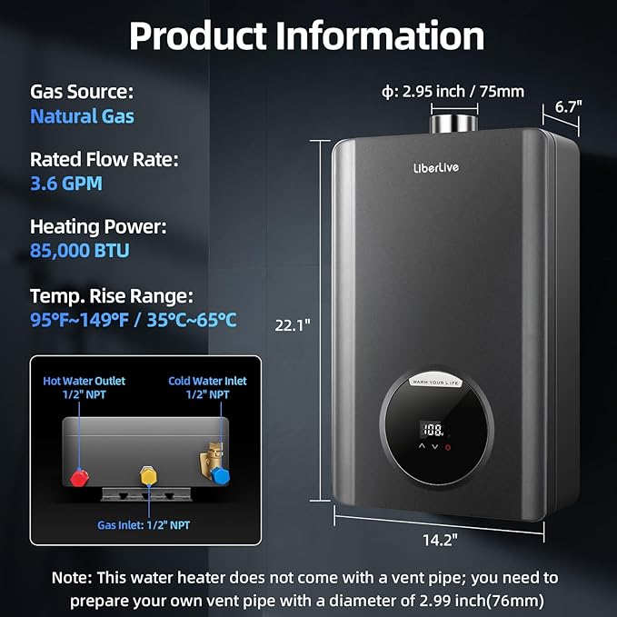 - 【Reliable Protection and Support】The LiberLive natural gas water heater comes with a comprehensive 2-year warranty that covers the entire unit. Our dedicated customer support team is always on hand to address any questions or concerns, ensuring you enjoy complete peace of mind