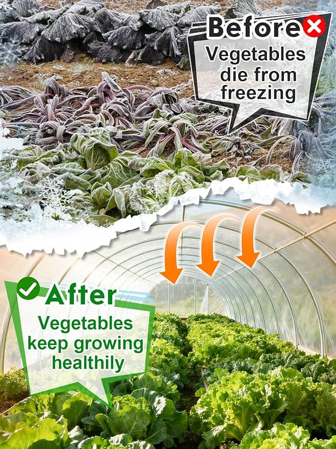 - Plant Covers Freeze Protection: Includes a high-quality transparent greenhouse plastic sheeting and 36 stainless steel clips for secure attachment. Perfect for protecting outdoor plants from rain, snow, and frost during winter, ensuring safe plant growth in colder weather