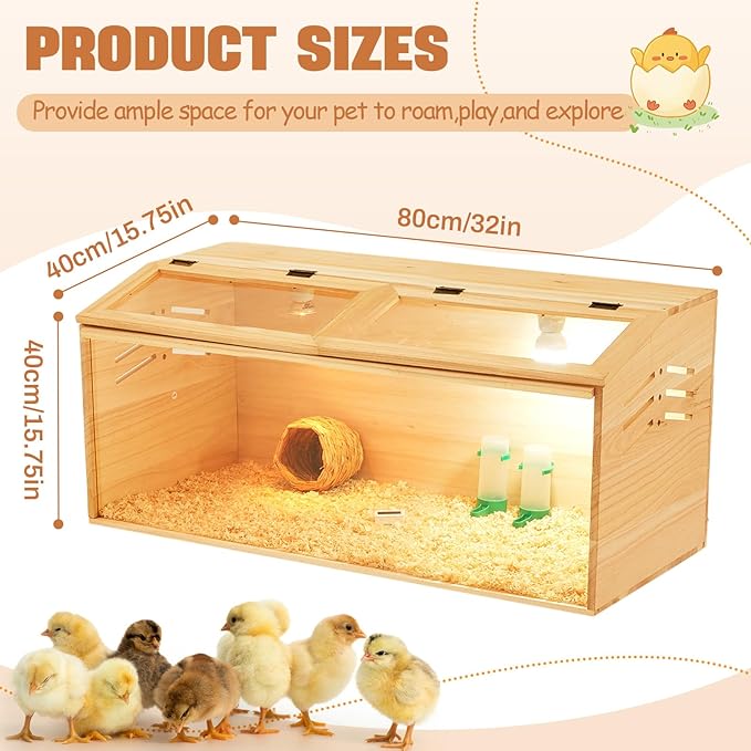 - Large Enough Space: our chicken box measures approximately 32 x 16 x 16 in ches, providing a spacious interactive environment for your small pets such as chicks, ducks, parrots, lizards and hamsters