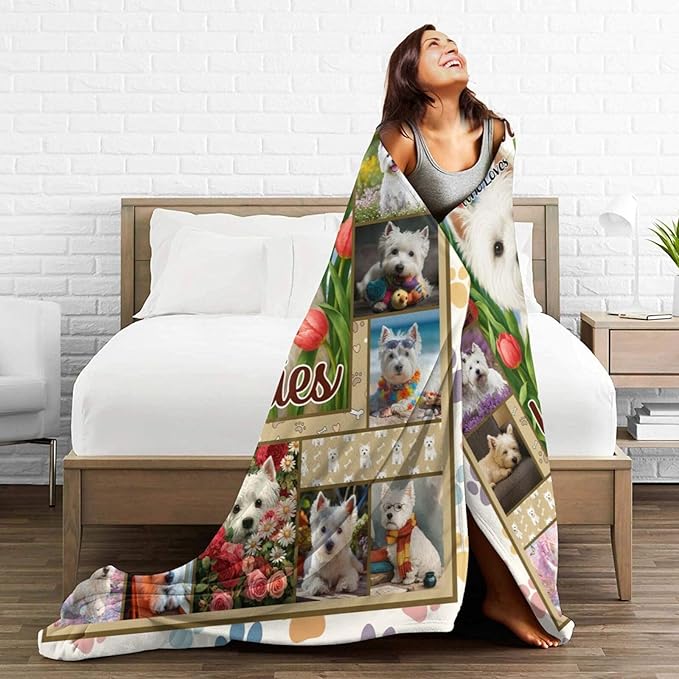 West Highland White Terrier Fleece Blanket Cute Westies Dog Throw Blankets for Girls Boys Super Soft Warm Flannel Animal Throws Gifts for Men Women Cozy Fuzzy Plush Stuffed Couch Bed Decor 80"X60"