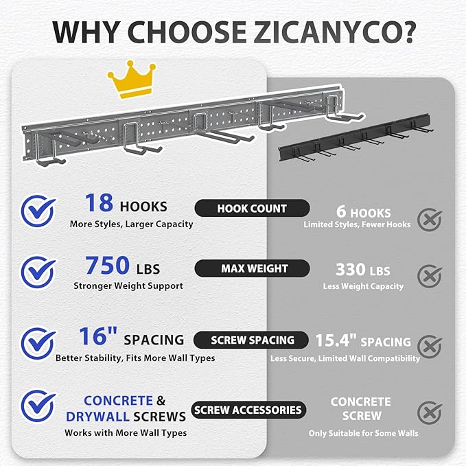 - Built to Last: Heavy-duty carbon steel construction gives this garage organization rack its muscle, while a water- and rust-resistant coating ensures it stays looking sharp for years. The PVC-wrapped hooks add a layer of protection, cradling your tools without scratches or slips