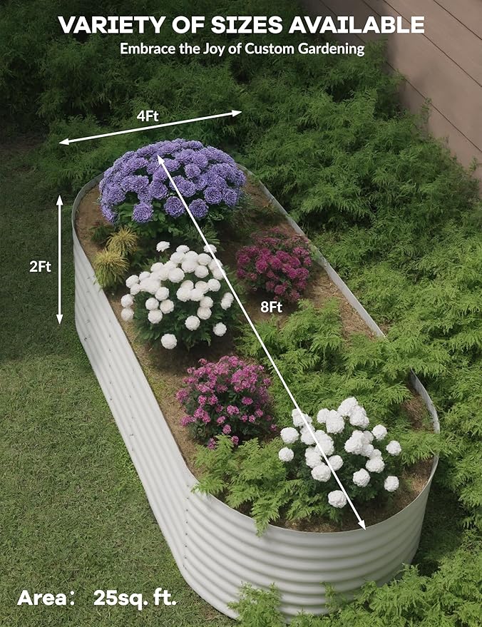 - 【2 Pack Premium Galvanized Raised Garden Bed】Our heavy-duty raised garden bed features 18/24 in elevated sides - taller than standard garden boxes for better root growth. Constructed with weather-resistant galvanized steel and internal supports, this planter raised bed offers superior durability for outdoor use.