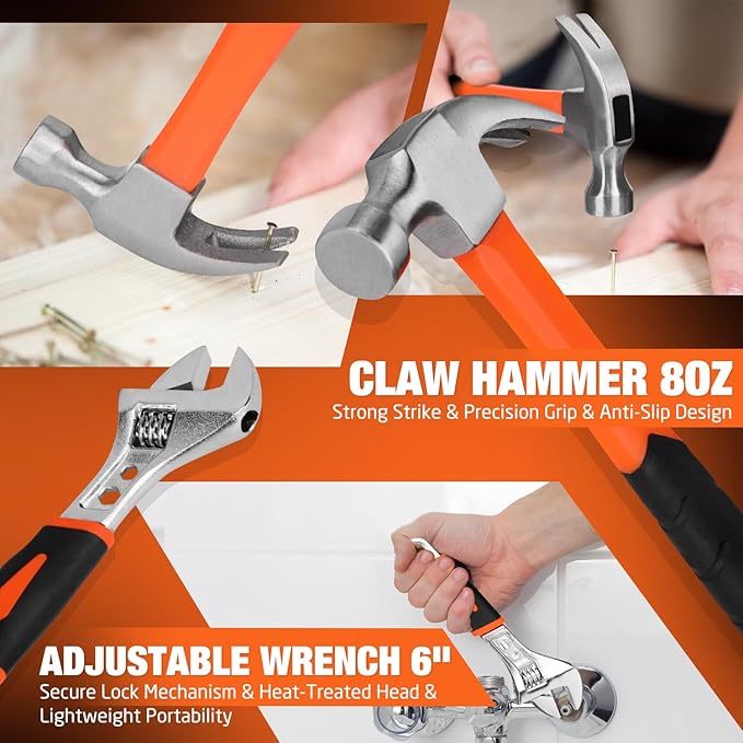 - 【Durable & High-Performance Tool Set】Forged from premium carbon steel, heat-treated for hardness, and finished with chrome plating to ensure long-lasting durability. Its exceptional wear and corrosion resistance guarantees stable performance over time. The handle features a non-slip textured grip designed to fit the natural curve of the palm, reducing fatigue during extended use.