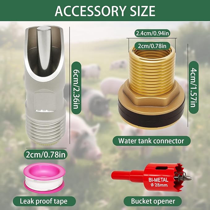 - 【Easy Installation: Simply drill a hole using the included puncher, secure the pig water nipple with brass connectors, and wrap PTFE tape to help reduce leaks when installed properly—ideal for barrels, tanks, or pipes.