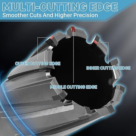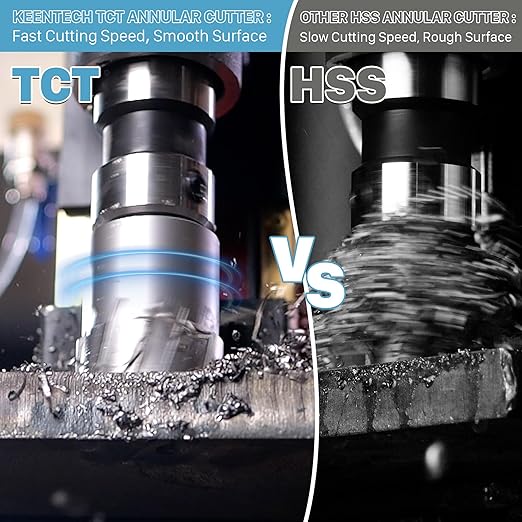 - 【Higher Speed Cutting】- KEENTECH TCT Annular Cutters – engineered to cut faster, last longer, and outperform conventional HSS tools. Featuring an ultra-hard carbide-tipped head and a innovative triple-edge design, the workload is evenly distributed for smoother, more precise cuts – all at 3–5 times the speed of standard HSS cutters. Whether you're working with carbon steel, stainless steel, cast iron, or tough alloys, experience unmatched efficiency and a flawless finish every time. Upgrade your cutting game with KEENTECH – where performance meets precision.
