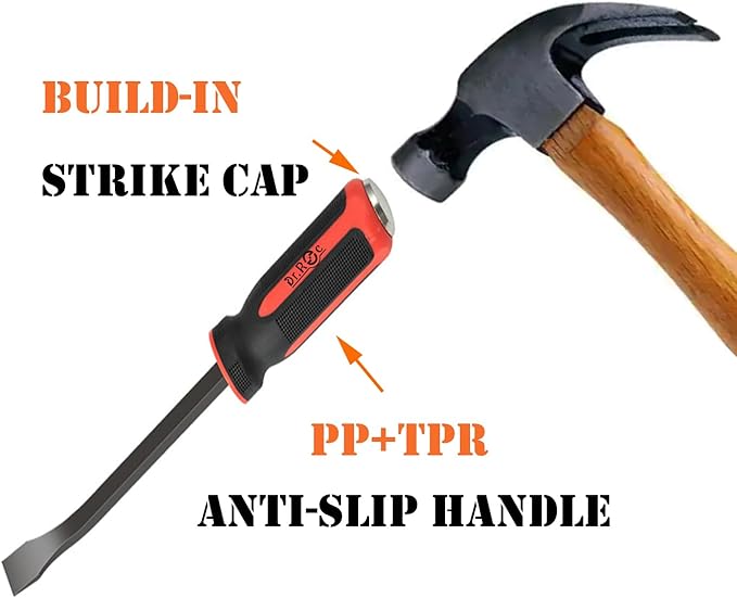 - Long Ergonomic PP+TPR Handle with Build-in Strike Cap:The crowbar is designed with a strike cap which allows you to use a hammer to strike the crow bars into place but without breaking the handle.Also the ergonomic PP+TPR handle offers a comfortable and non-slip grip to keep control it even better.