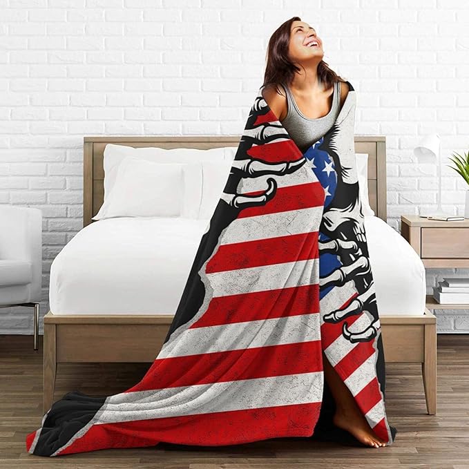 Gothic Fleece Blanket Horrible Skull Throw Blankets for Girls Boys Super Soft Warm Flannel American Flag Throws Gifts for Men Women Cozy Fuzzy Plush Stuffed Couch Bed Bedding Decor 60"X50"
