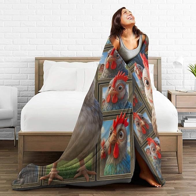 Chicken Fleece Blanket Funny Rooster Throw Blankets for Girls Boys Super Soft Warm Flannel Farm Themed Throws Gifts for Adults Men Women Cozy Fuzzy Plush Stuffed Couch Bed Bedding Decor 50"X40"