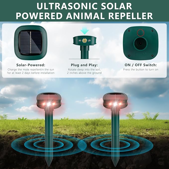 - New Version Upgrade in 2025:This ultrasonic mouse repellent features state of the art ultrasonic technology which creates a powerful ultrasonic wave,accompanied at the same time by an alarm sound. Ultrasonic animal repellers scare them away from your house, garden, yard and stop animals from ravaging your favorite plants.