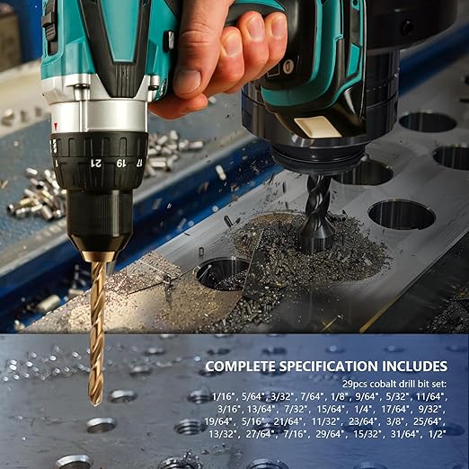 - Set Includes: The set includes 29Pcs (1/16"-1/2") Cobalt Drill Bits, This cobalt drill bit also includes the drill bit holder with size index for easy storage and organizing.