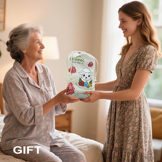 - 6-Pack with Linen Bag - Includes 6 XL wool dryer balls and a durable linen bag for easy storage. Keep your laundry space organized and tidy