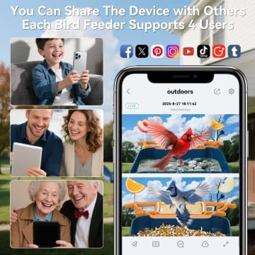 - IDEAL GIFTS FOR BIRDS LOVER - Birdfeeder and bath built-in dual cameras allow you to enjoy unprecedented natural experiences, the video bird feeder can be used by 4 users, other users download the same app, the host user can share it within the app. Share fun with family and friends, give them as a gifts. Best gift for Dad, Mom for Birthday, Christmas, Mother's Day, Father's Day