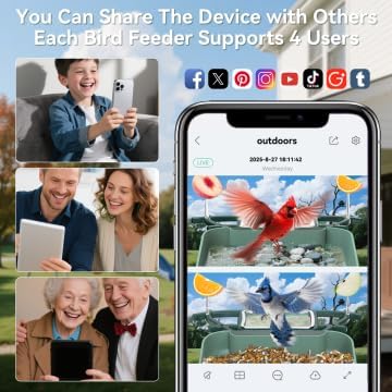 - IDEAL GIFTS FOR BIRDS LOVER - Birdfeeder and bath built-in dual cameras allow you to enjoy unprecedented natural experiences, the video bird feeder can be used by 4 users, other users download the same app, the host user can share it within the app. Share fun with family and friends, give them as a gifts. Best gift for Dad, Mom for Birthday, Christmas, Mother's Day, Father's Day
