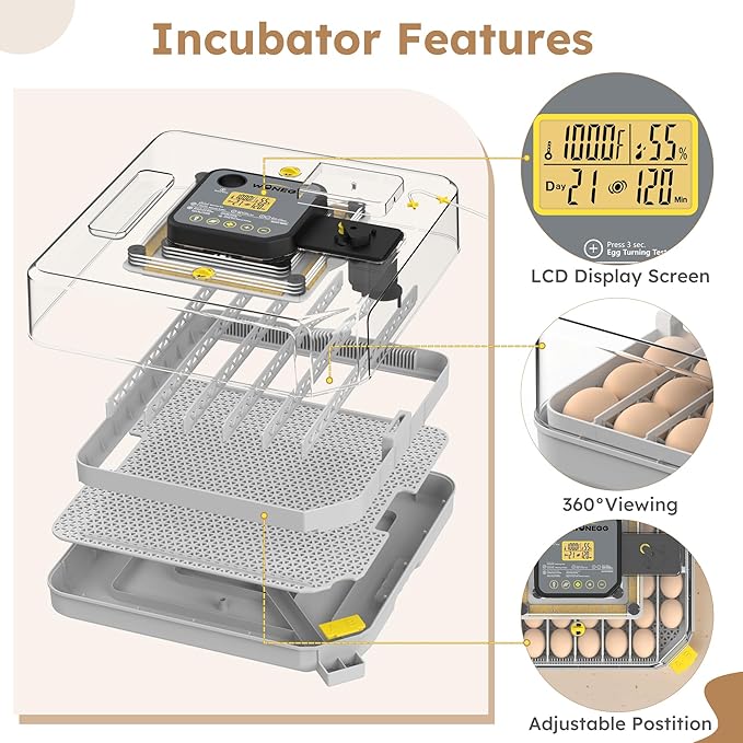 - 【Easy Operation & Multi-Scene Use】 User-friendly digital interface with countdown timer, removable components for simple cleaning, and wide applications for farms, classrooms, labs, and home poultry enthusiasts.