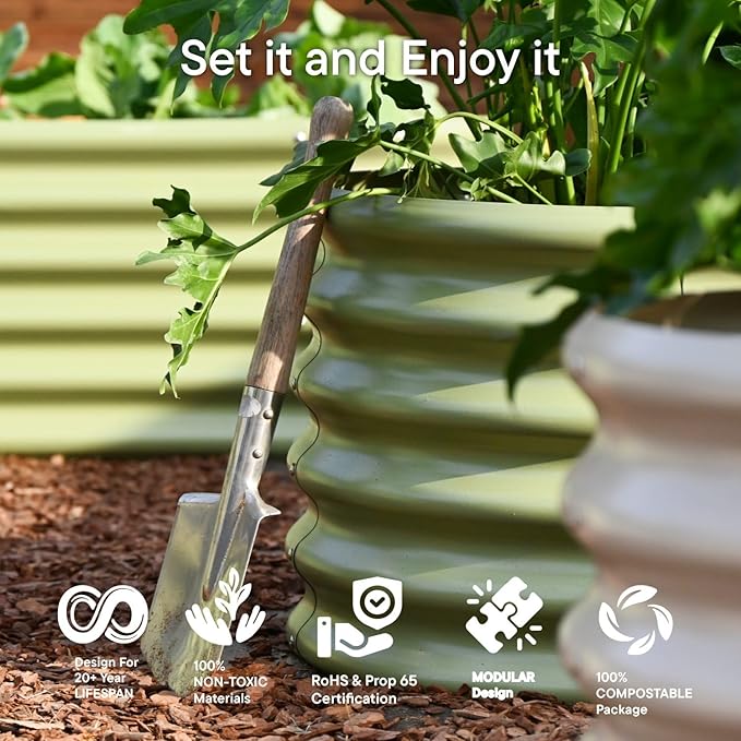 - ☘️Eco-Safe Design☘️ Non-toxic, RoHS and Prop 65–compliant materials make your organic garden possible. Food-grade stainless steel hardware and coated edges prevent rust. Even the packaging is compostable — a truly Eco-conscious raised beds for gardening.