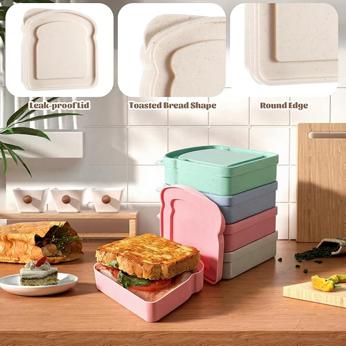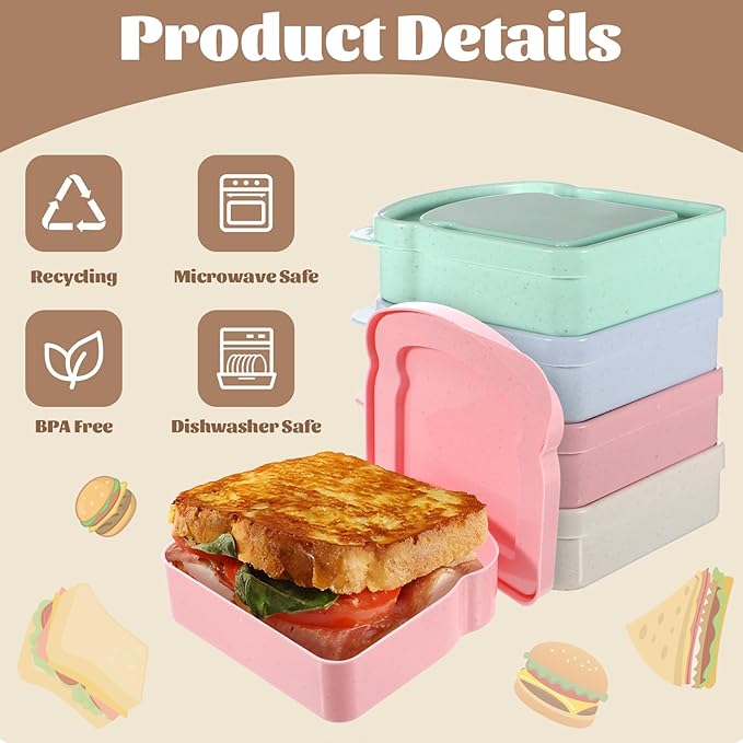 - 【Secure and Fresh】The sandwich container is easy to carry, suitable for your work lunch, camping, hiking, travel, afternoon tea, gym, etc. The sandwich box can keep your food in good condition when you travel or go out. This sandwich container is available in four different colors, catering to personal preferences and making it easy to organize.
