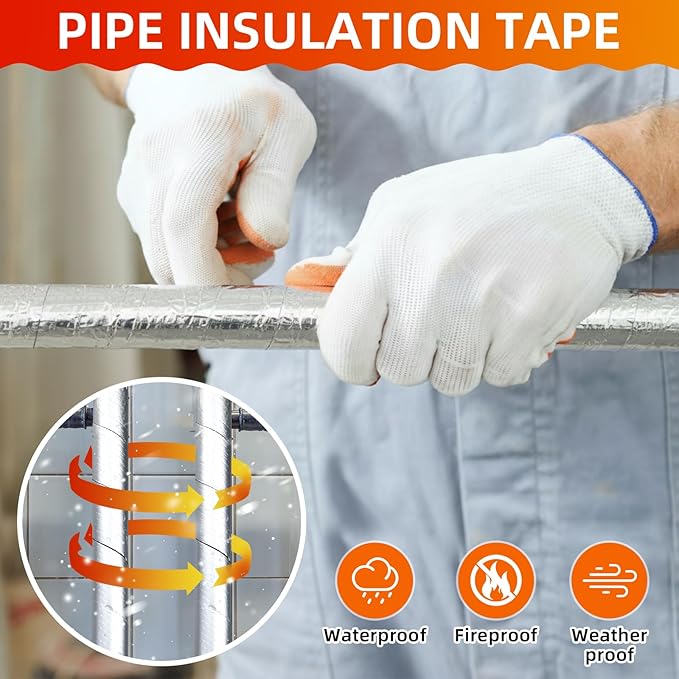 - Pipe Insulation Tape: our pipe insulation tape rolls are made of rubber and sponge, making them waterproof, fireproof, and weather-resistant; Especially suitable for protecting outdoor pipes from freezing in winter; They not only insulate hot water pipes to prevent heat loss, but also effectively protect cold water pipes from freezing or moisture; To install, simply remove the film backing and wrap the tape around the outdoor pipe