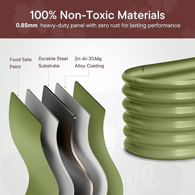 - ☘️Safe & Eco-Friendly☘️ Non-toxic, RoHS and Prop 65–compliant materials make your organic garden possible. Food-grade stainless steel hardware and coated edges prevent rust. Even the packaging is compostable — a truly Eco-conscious raised beds for gardening.