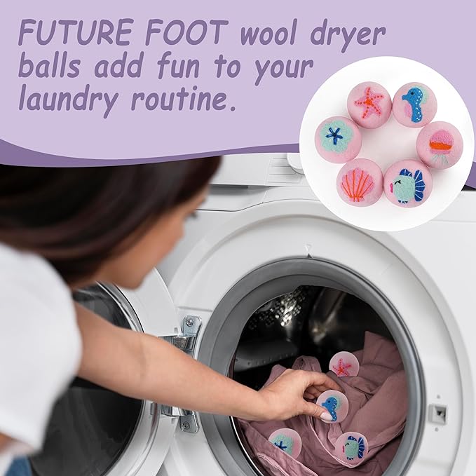 - 𝐂𝐔𝐓𝐄 𝐎𝐂𝐄𝐀𝐍 𝐏𝐀𝐓𝐓𝐄𝐑𝐍 - This FUTURE FOOT wool ball with patterns of Marine creatures can take you on a refreshing ocean journey. They can not only help you do laundry easily, but also serve as pet toys or be transformed into natural air fresheners by adding essential oils. Let every laundry be filled with the fresh scent of the ocean, bringing a touch of the coolness and joy of the sea breeze to your home.