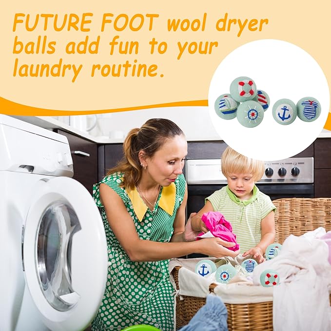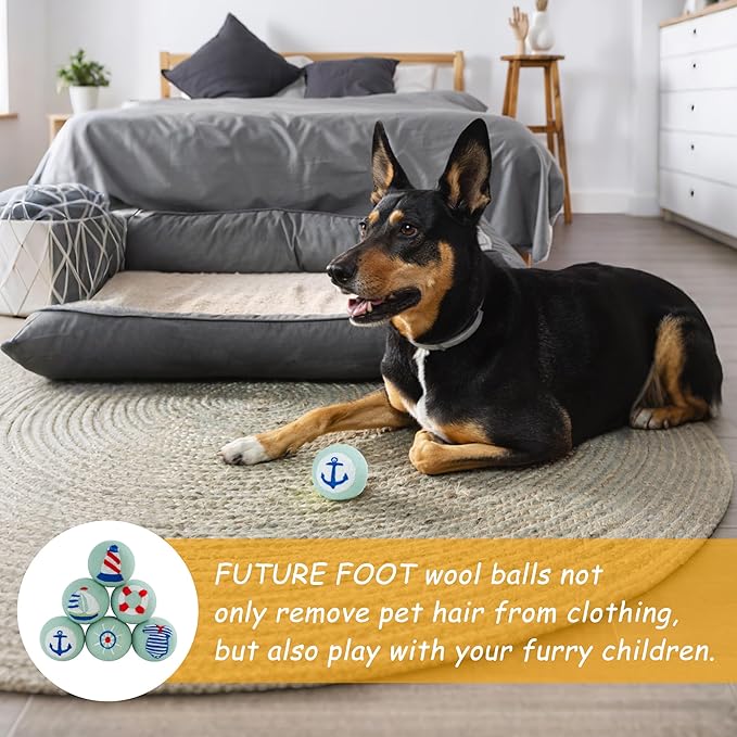 - 𝐍𝐀𝐔𝐓𝐈𝐂𝐀𝐋 𝐏𝐀𝐓𝐓𝐄𝐑𝐍 - This FUTURE FOOT wool ball full of nautical elements will bring you a sea journey full of adventure and exploration. They can not only add fun to laundry days, but also be used as pet toys or with essential oils dripped on them as natural air fresheners. Every time you do laundry, it's like a nautical adventure, giving you the freedom and vitality of sailing.